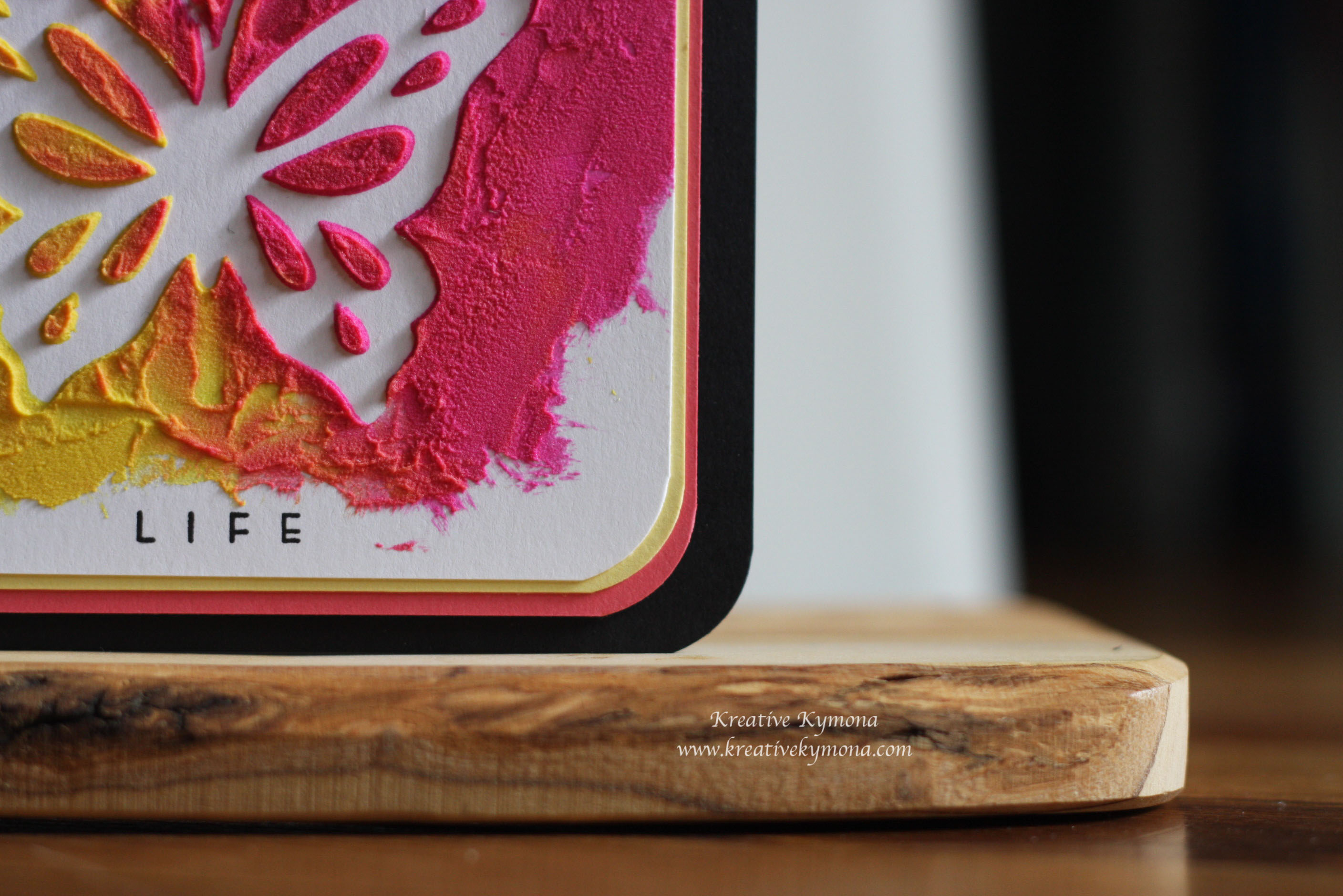 So I knew right away that I had to pull out my Koi watercolors. I decided that I wanted to use colors I hardly use that are bright and will stand out on the black cardstock I wanted to use.