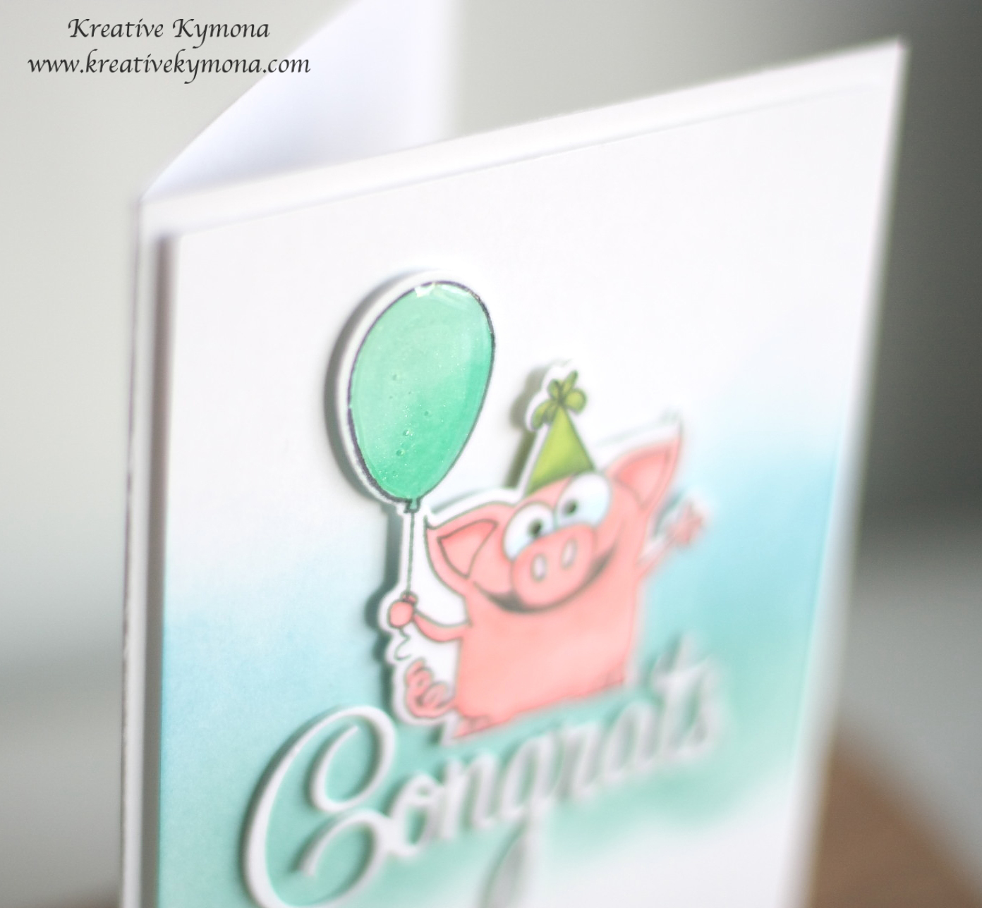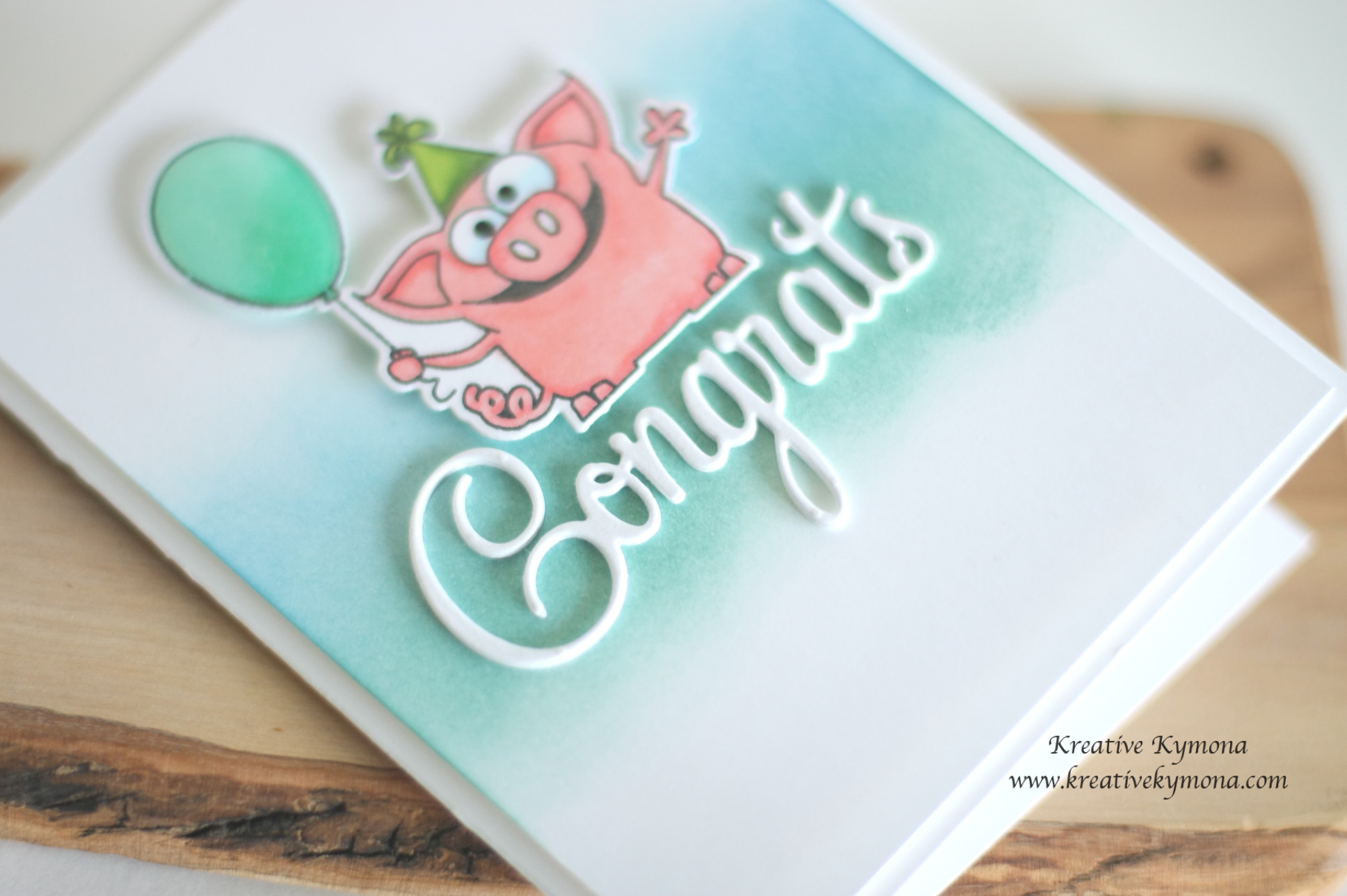 6. I added foam adhesive to the back of my pig and balloon and adhered it right above my die cut sentiment.