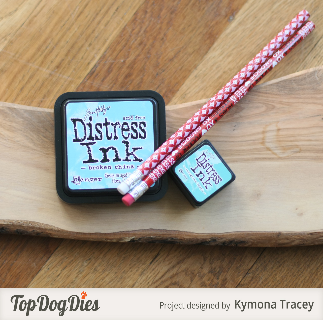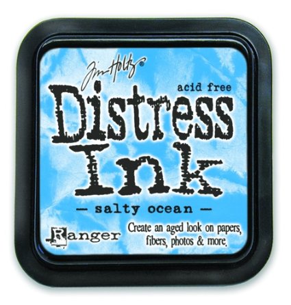 2. I used Distress Inks Evergreen Bough and Salty Ocean to blend the colors across the center of the card.
