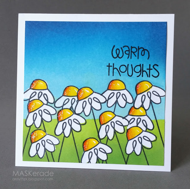 Now you see those two stars in between my sentiment? Well, I had to add those because some of the black ink caught my paper on the pink balloon while I was stamping it. I think I saved it pretty well. I used Lucy Adams Star Shine Sparkly Sequin to save the day.