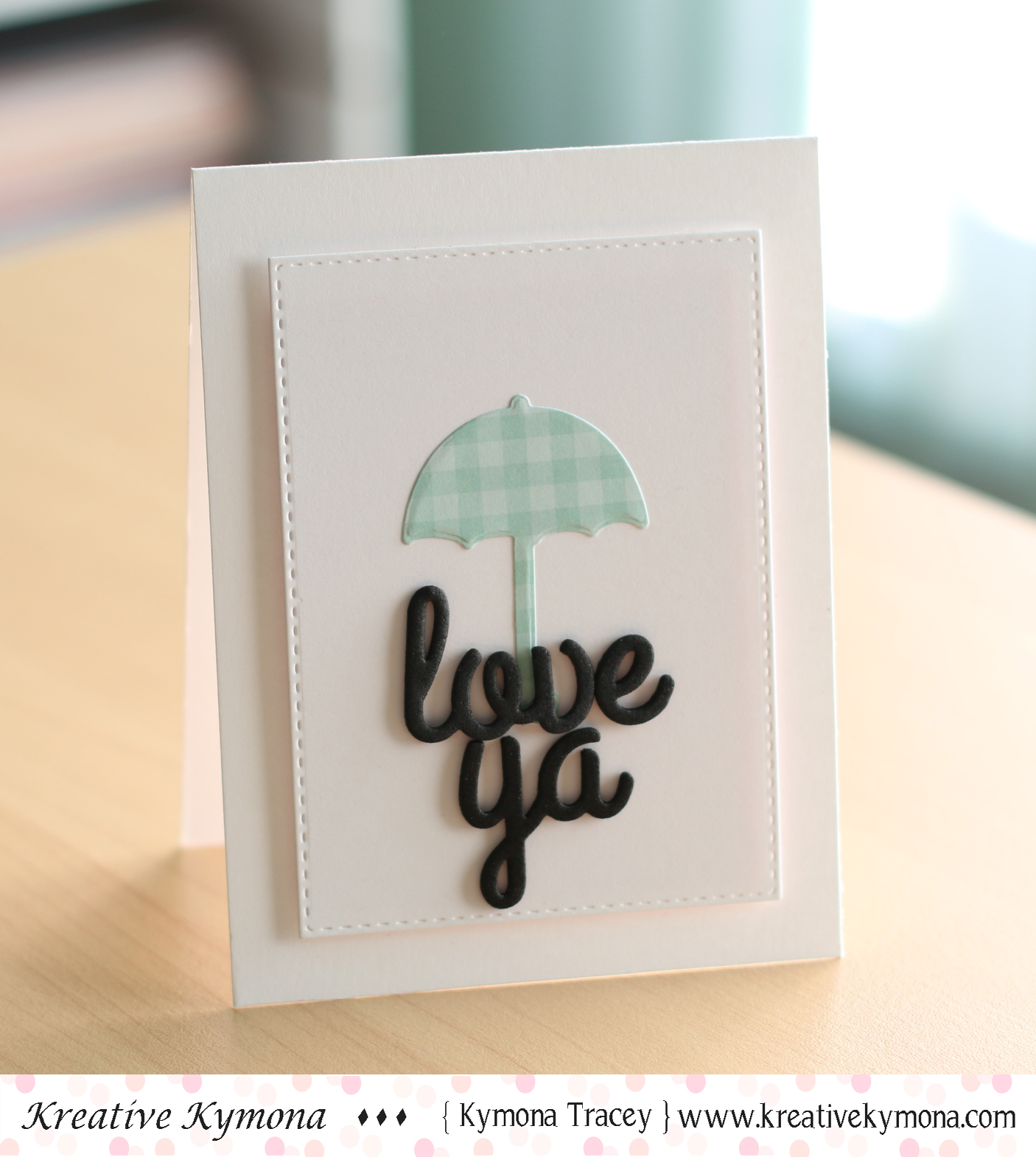 All I did was die cut the umbrella from Simon Says Stamp Addy’s Spring Showers Die Set out of My Favorite Things Homespun Gingham Paper Pack.