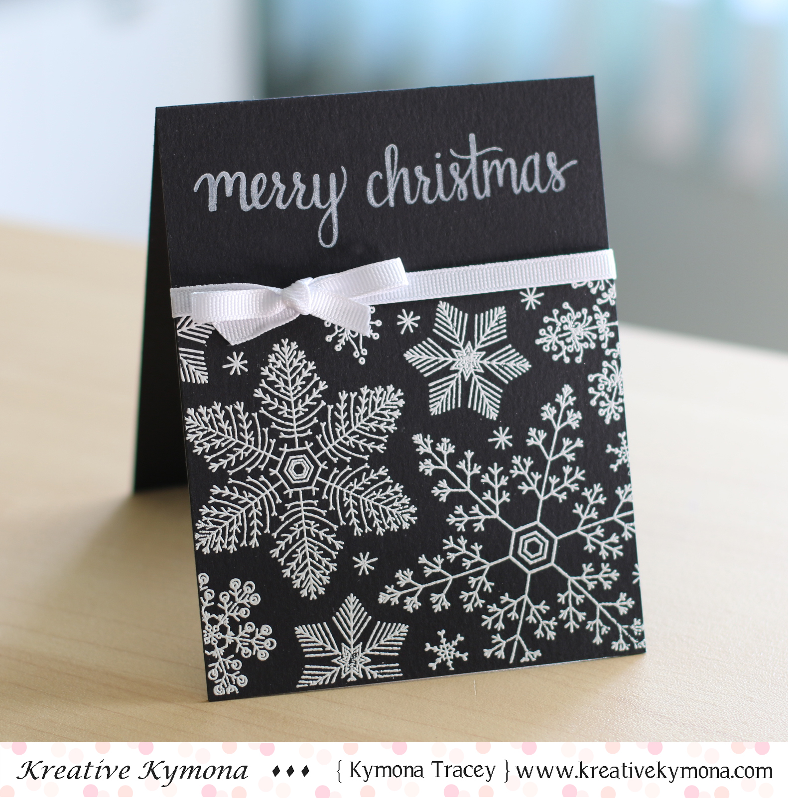 2. I used the new Hero Arts Hand Drawn Snowflakes Bold Prints Stamp Set and stamped it on my black cardstock using Versamark ink.