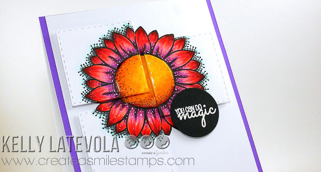 I love how Kelly raised the flower by added those square panels. So pretty and dimensional.