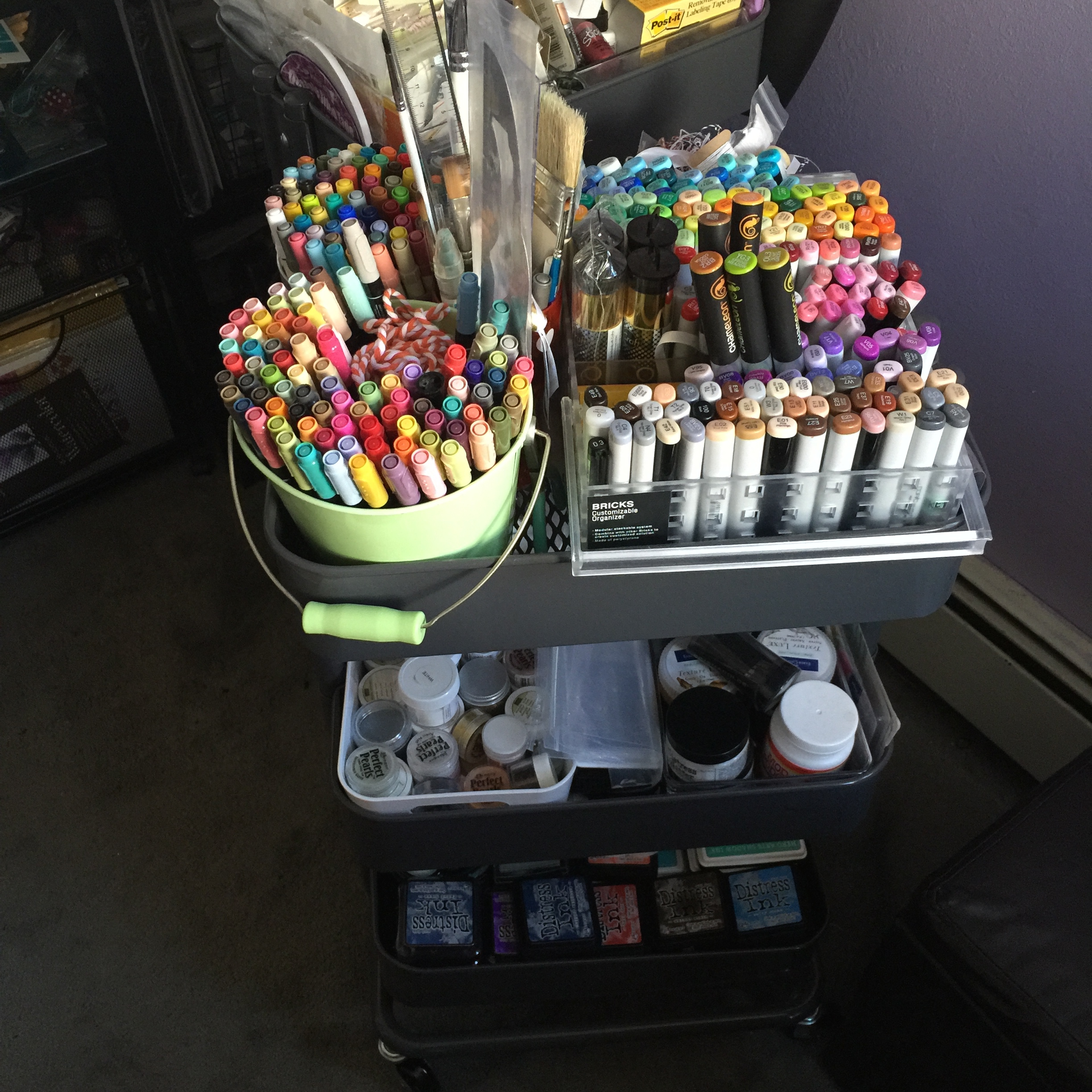 I have two of the Ikea carts filled with all of my fun favorite toys.  This one has all my markers, inks, embossing pastes and embossing powders.