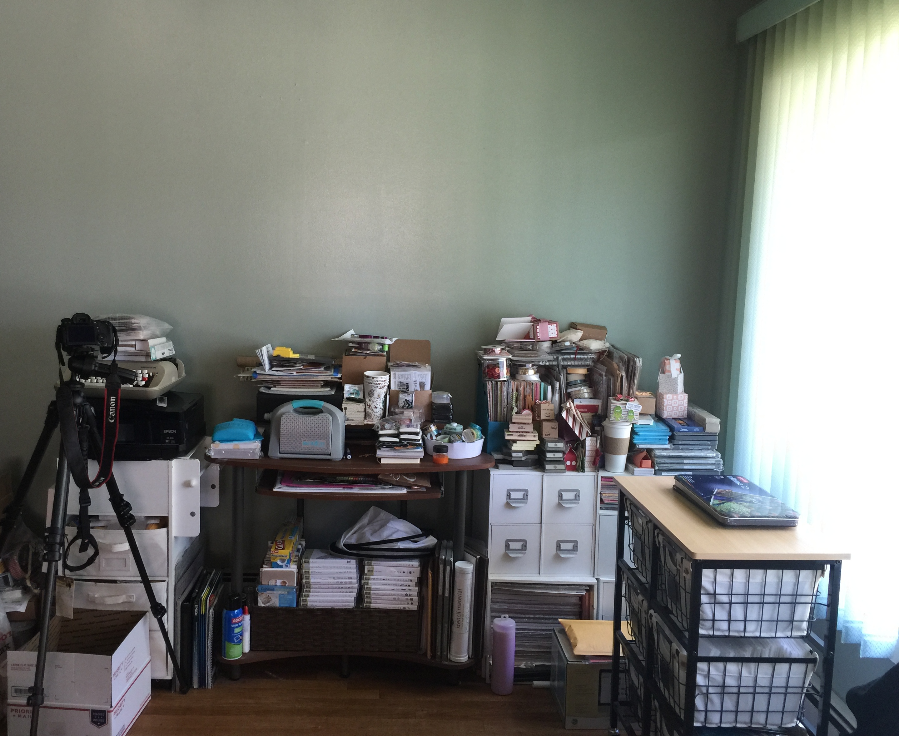 All of my “craft stuff” can’t fit by my desk so I have an additional space in my living room and basement that houses the rest of my belonging.