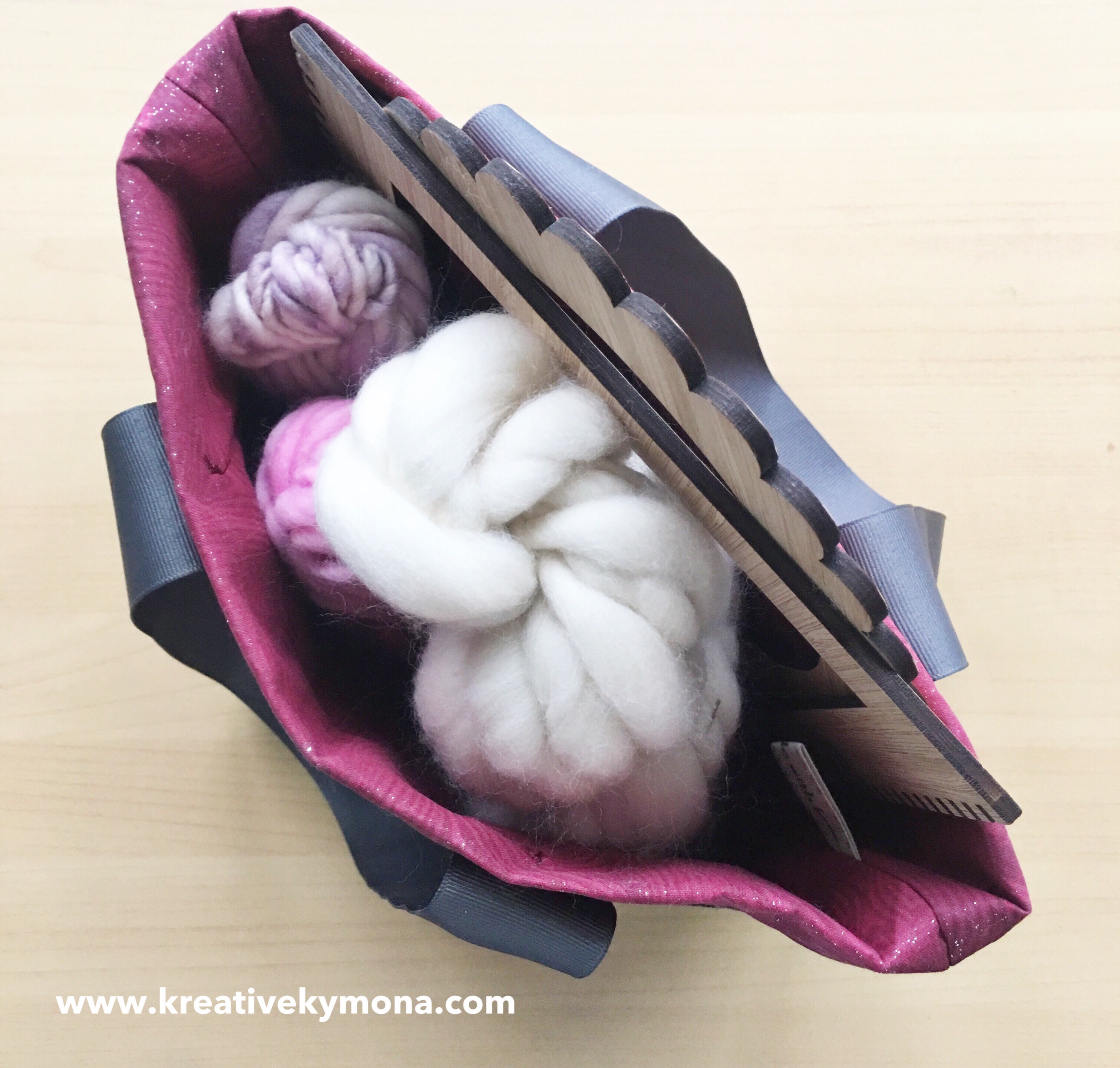 It keeps all of weaving looms and fibre from The Unusual Pear in Australia. Everything fits so nice and neat. It’s so accessible when I’m on the train. Fits right in my lap, while I weave.