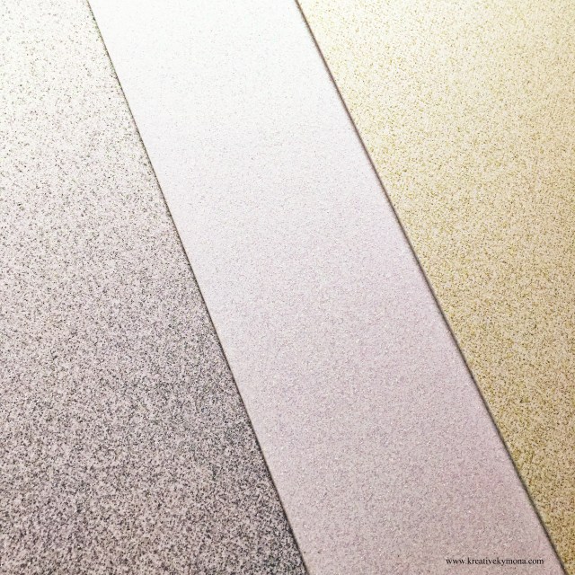 Top row: White glitter paper, Champagne glitter paper, Silver glitter paper
