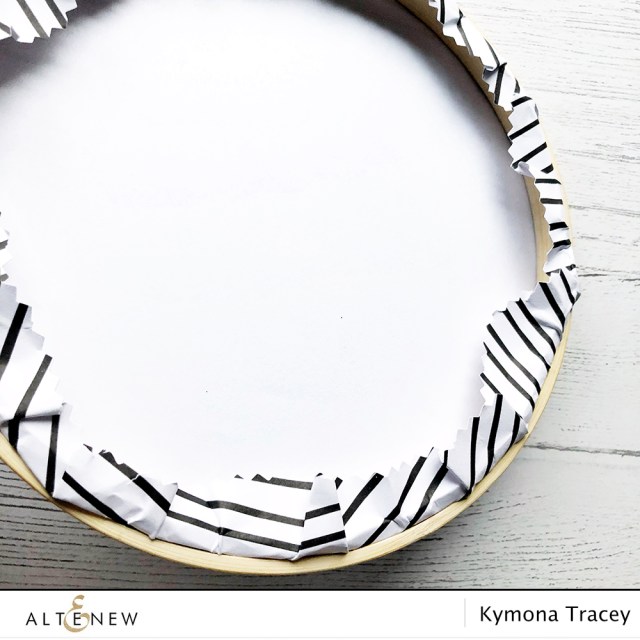 I used a piece of pattern paper from Altenew Reflection Scrapbook Kit to create the base of the embroidery hoop.