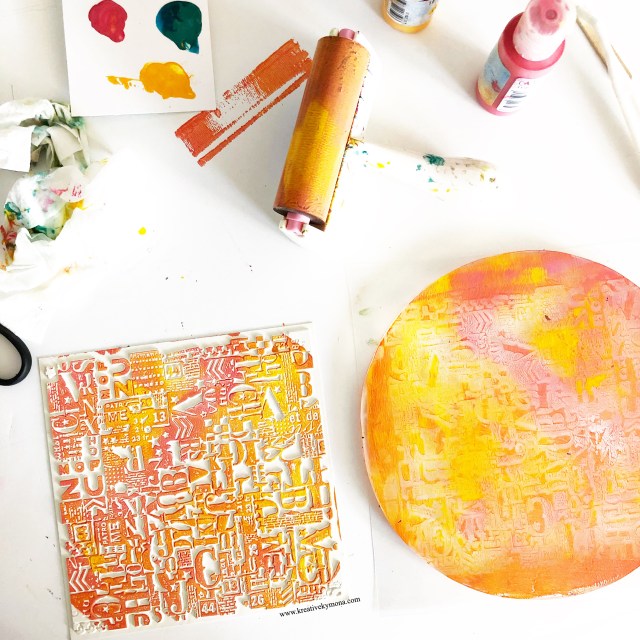 I created a monoprint using Carabella Studio Letters stamp set. Then cut it out using my Cricut Maker.