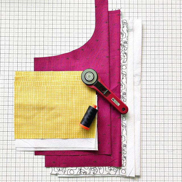 Here are the cut pieces and thread. I changed my mind and went with white thread instead.