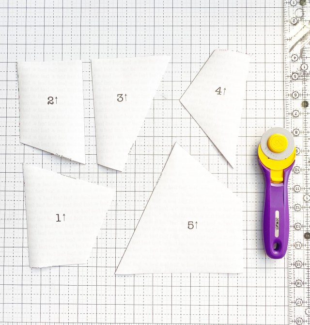 Start with numbers 2 and 3, pull the paper off, and sew them together using a 1/4 inch seam allowance.