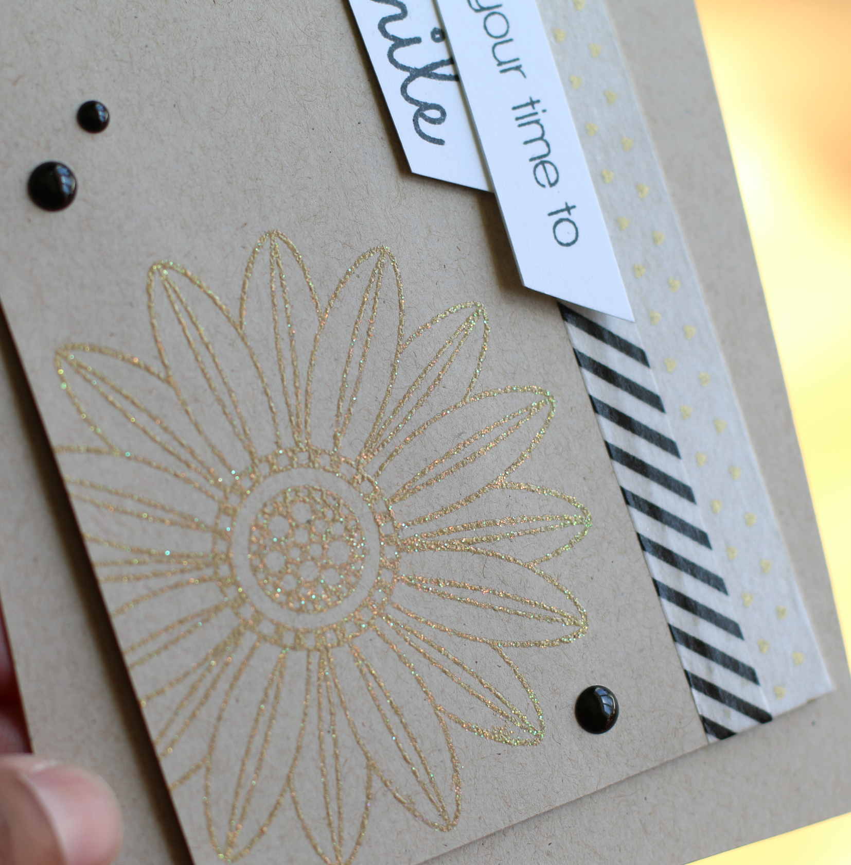 I love how the gold matches the watercolor background. I decided to use black ink for the sentiment because I wanted it to stand out from the background.