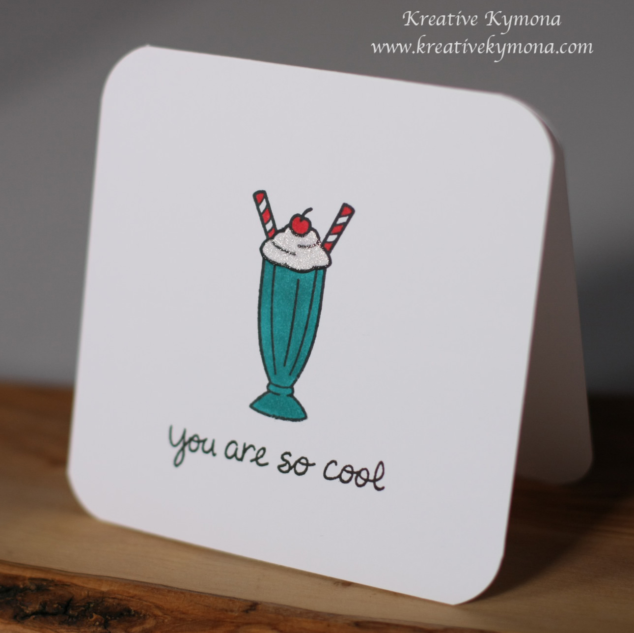 For this thank you card, I used So Suzy Stamps Thank you stamp and stamped that sentiment on the front of the card front. I used the second to smallest Stampin’ Up! retired heart die to cut out a heart from Lawn Fawn Hello Sunshine paper.