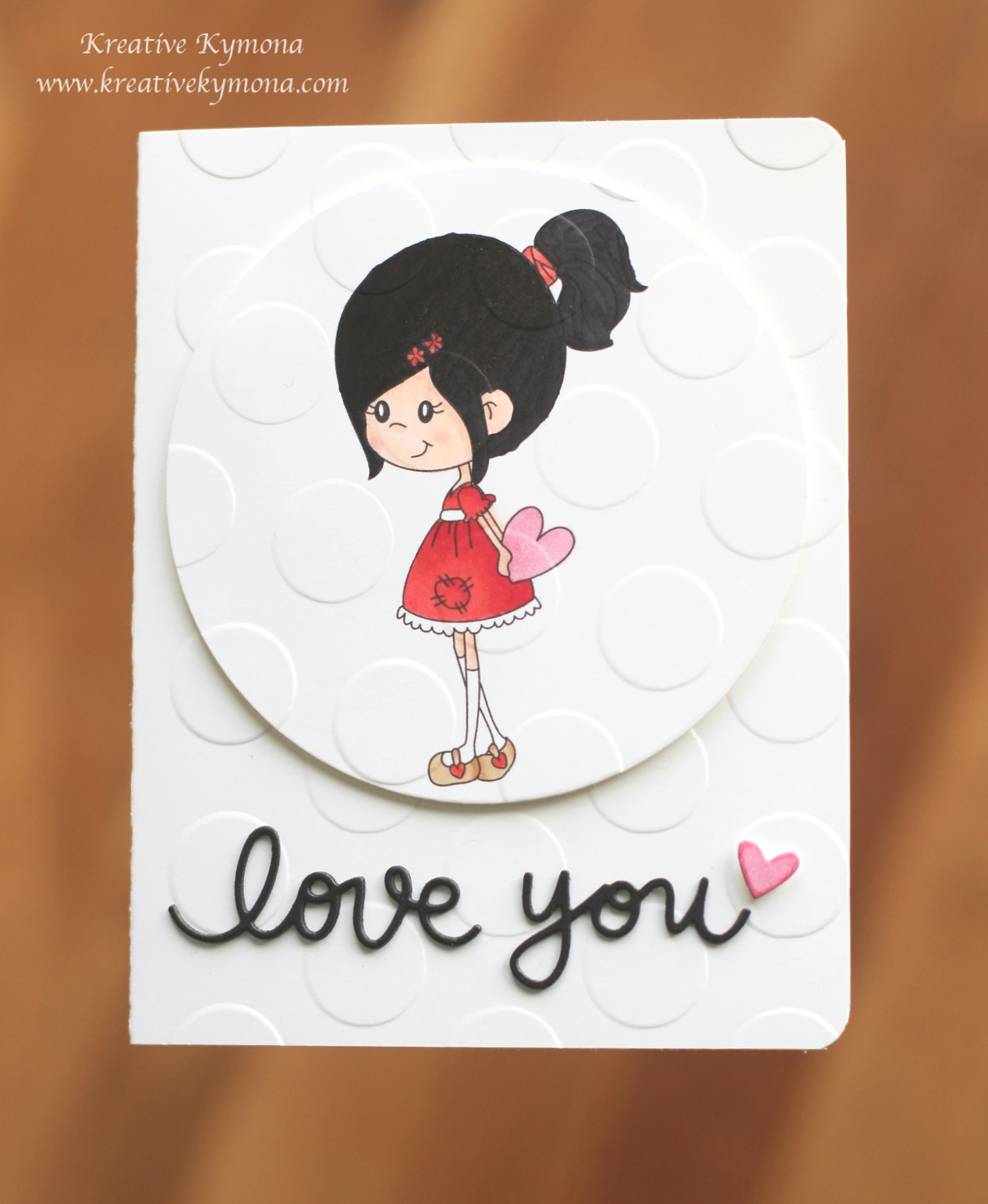 4. I stamped the little girl from Penny Black Cool Chicks Stamp Set within the drawn in circle on my card front. Once the ink dried, I erased the circle.