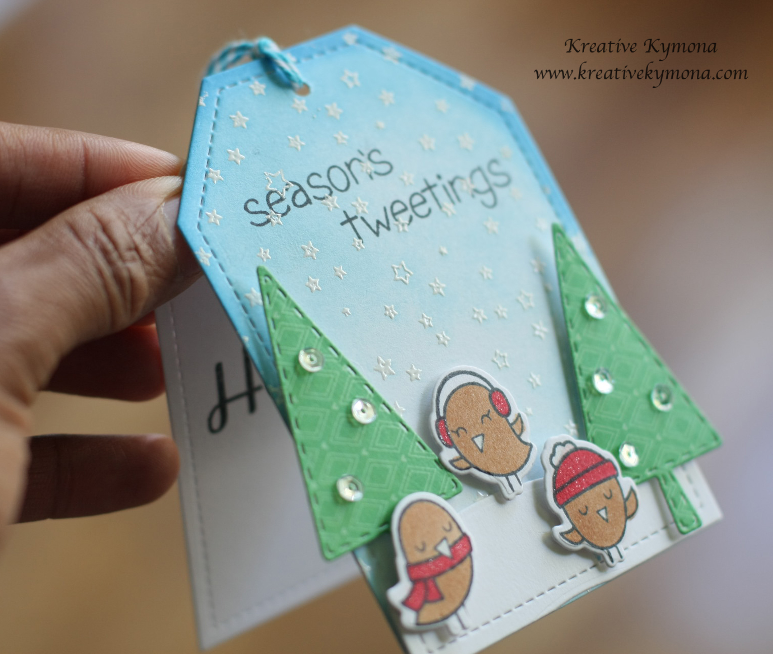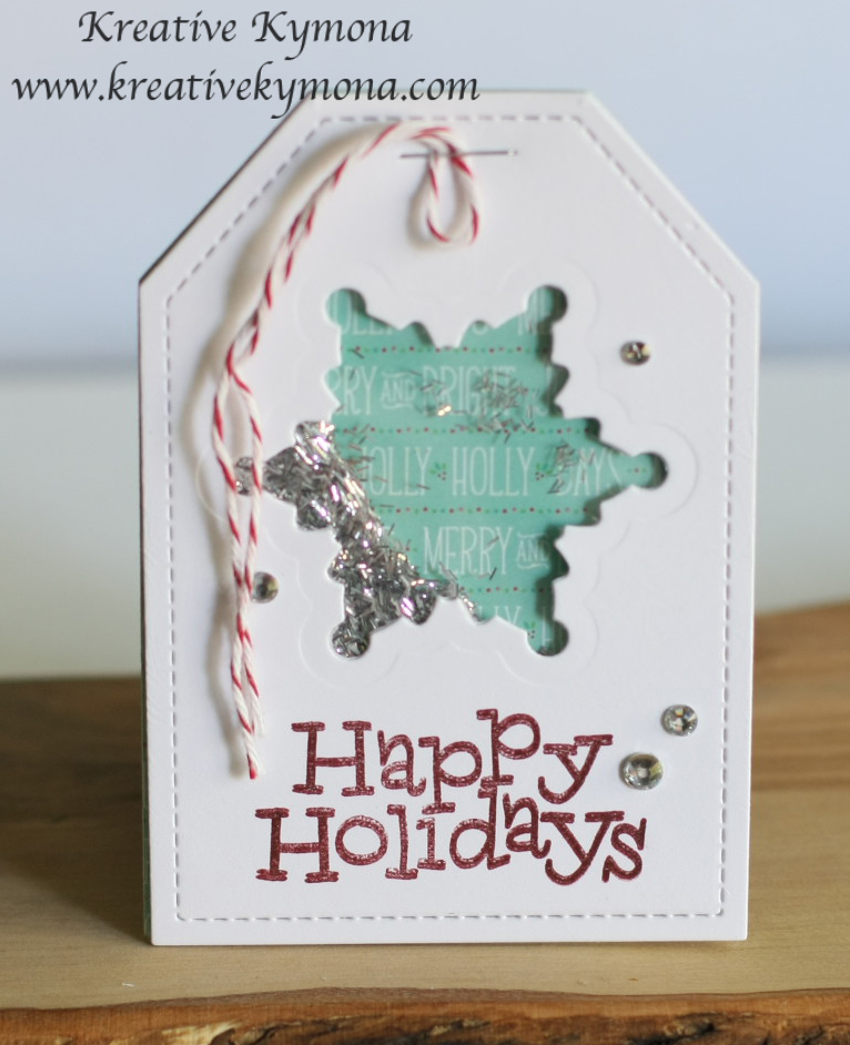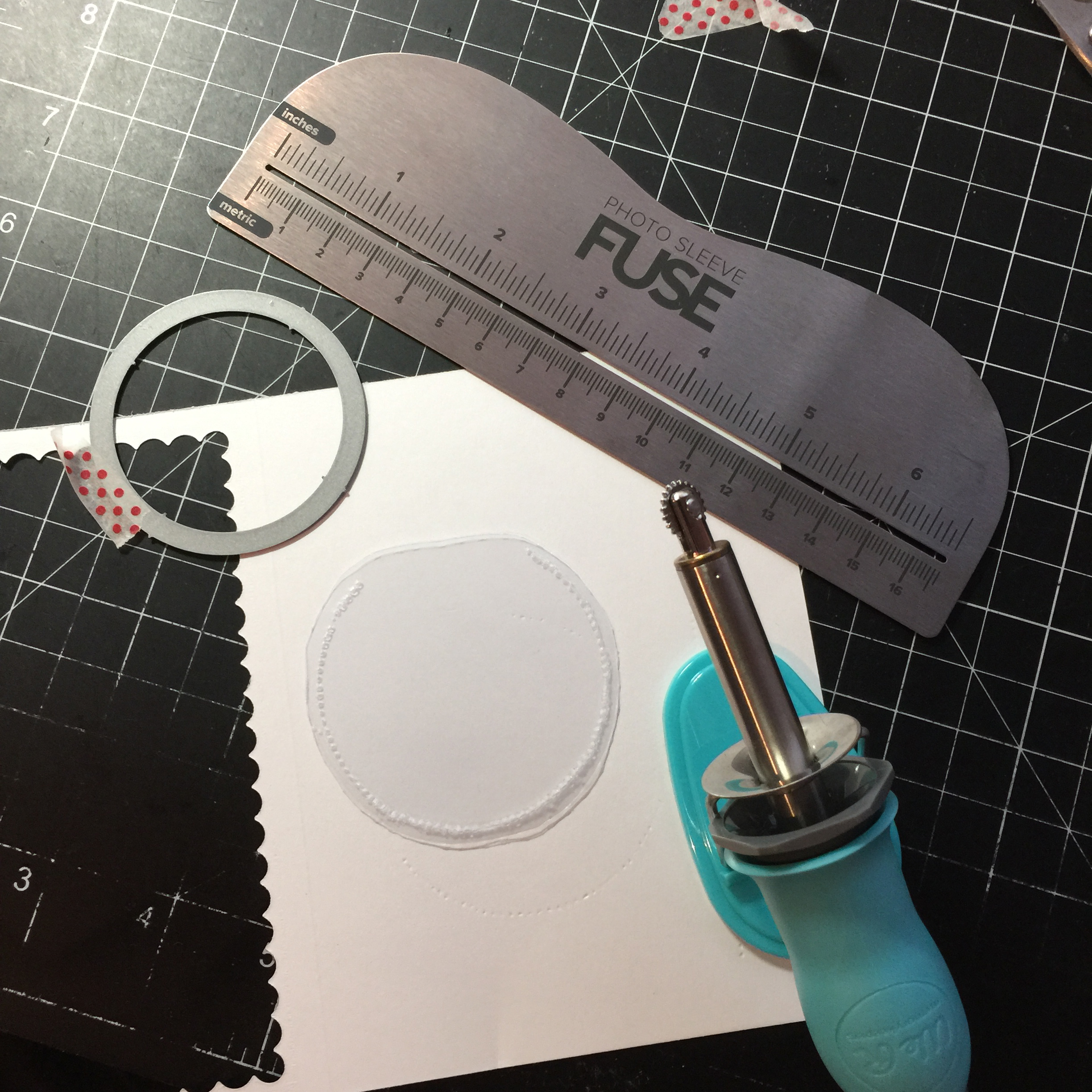 Other Supplies: Bristol Smooth Paper,Colorbox Archival Wicked Dye Ink, Snowdrift Shaker Selection by Lucy (discontinued) same as Falling Snow Sparkly Shaker, Bo Bonny Altitude Paper pad (discontinued), We R Memory Keepers Fuse Tool, We R Memory Keepers Photo Sleeves, Fun Foam, Mama Elephant (new die), Tombow Irojiten Vivid Coloring Pencils
