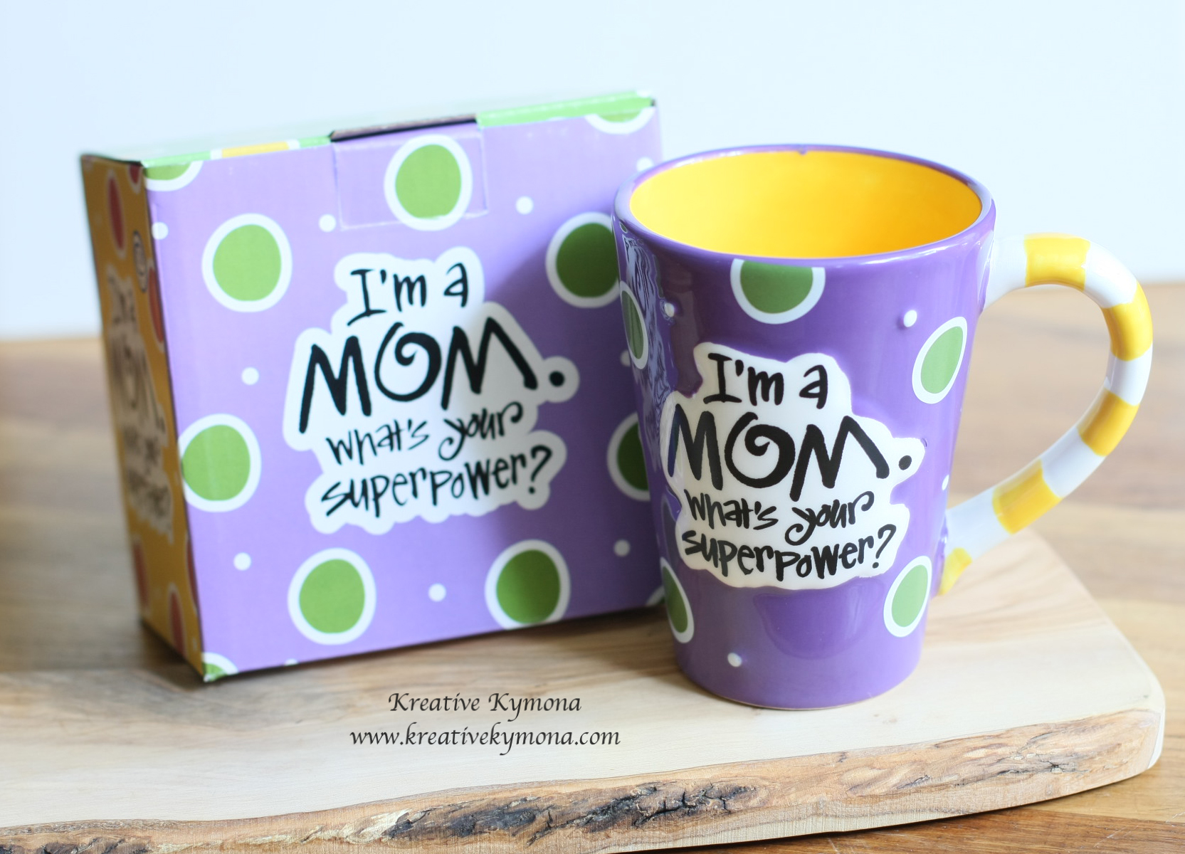 So, I decided to stick with what I know and that is I’m a mom too. So I searched for a mug that represented that. I look high and low.