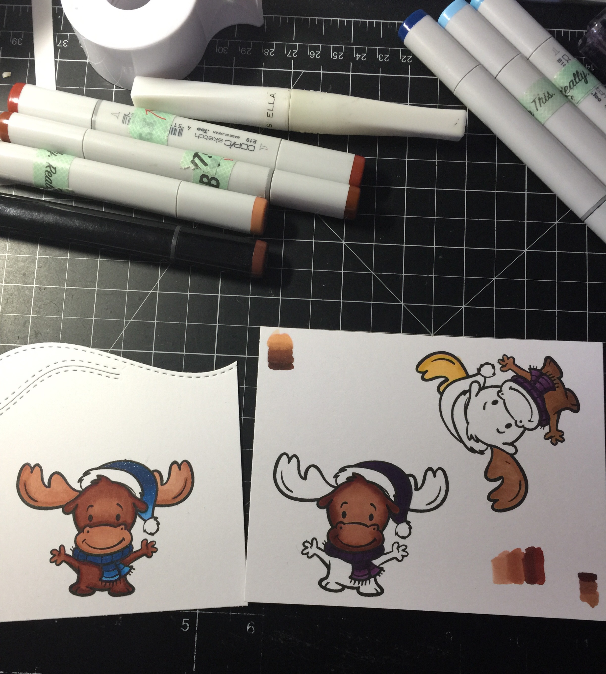 I was having a hard time deciding what colors to use on my moose so I turned to my Facebook Copic Group for some suggestions. I recieved some great combos.