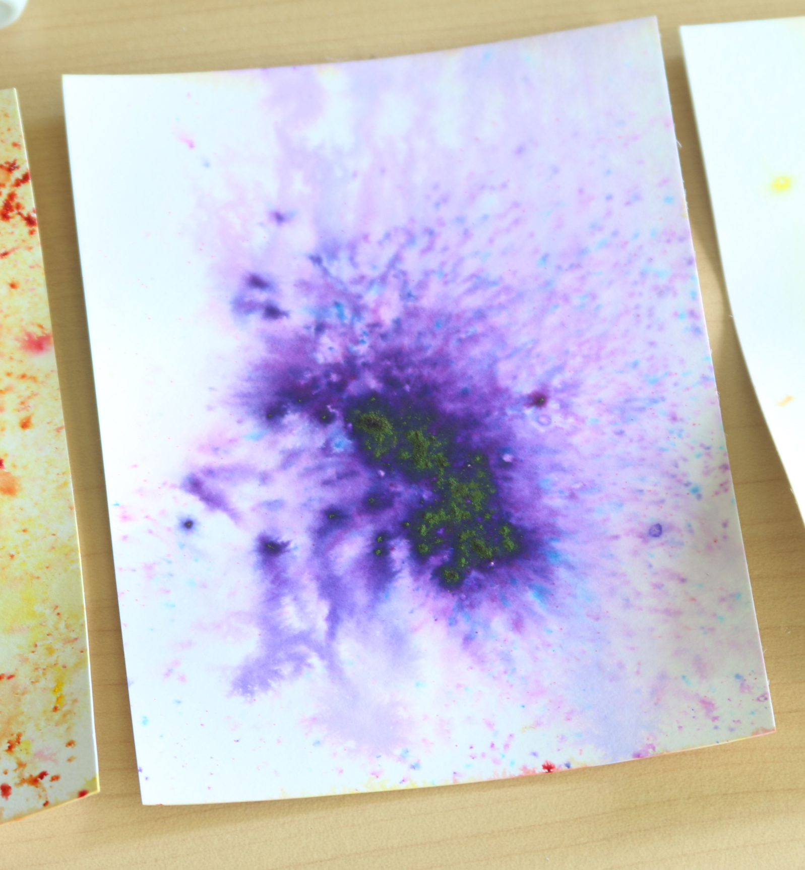 2. I took my spray bottle and sprayed a lot of water on my paper to activate the powder.